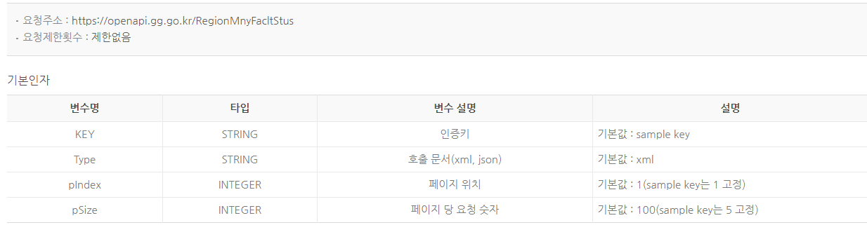 - getInfo()의 인자값으로 API에서 요구하는 값을 넣어야 합니다. (pIndex, pSize = null 처리함)