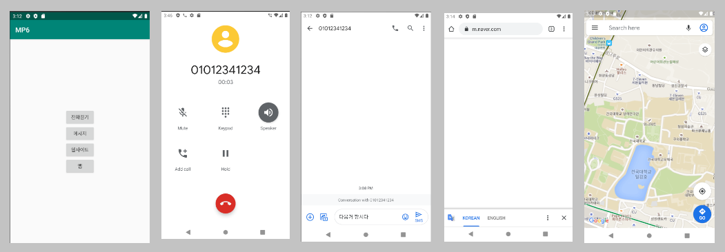 msgBtn, webBtn, mapBtn 3개의 버튼에 달린 setOnClickListener 내부 코드를 보겠습니다.