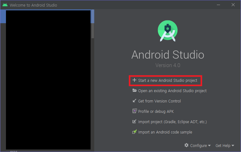 - 바탕화면의 Android Studio 아이콘을 더블클릭해 실행합니다