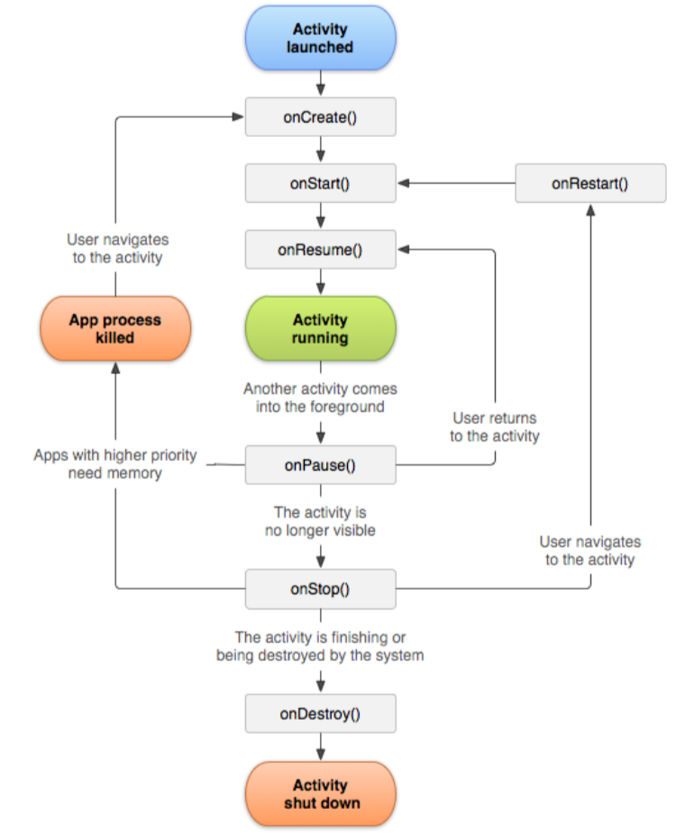 아래 그림은 안드로이드 공식 문서에 첨부되어있는 LifeCycle 도식입니다.