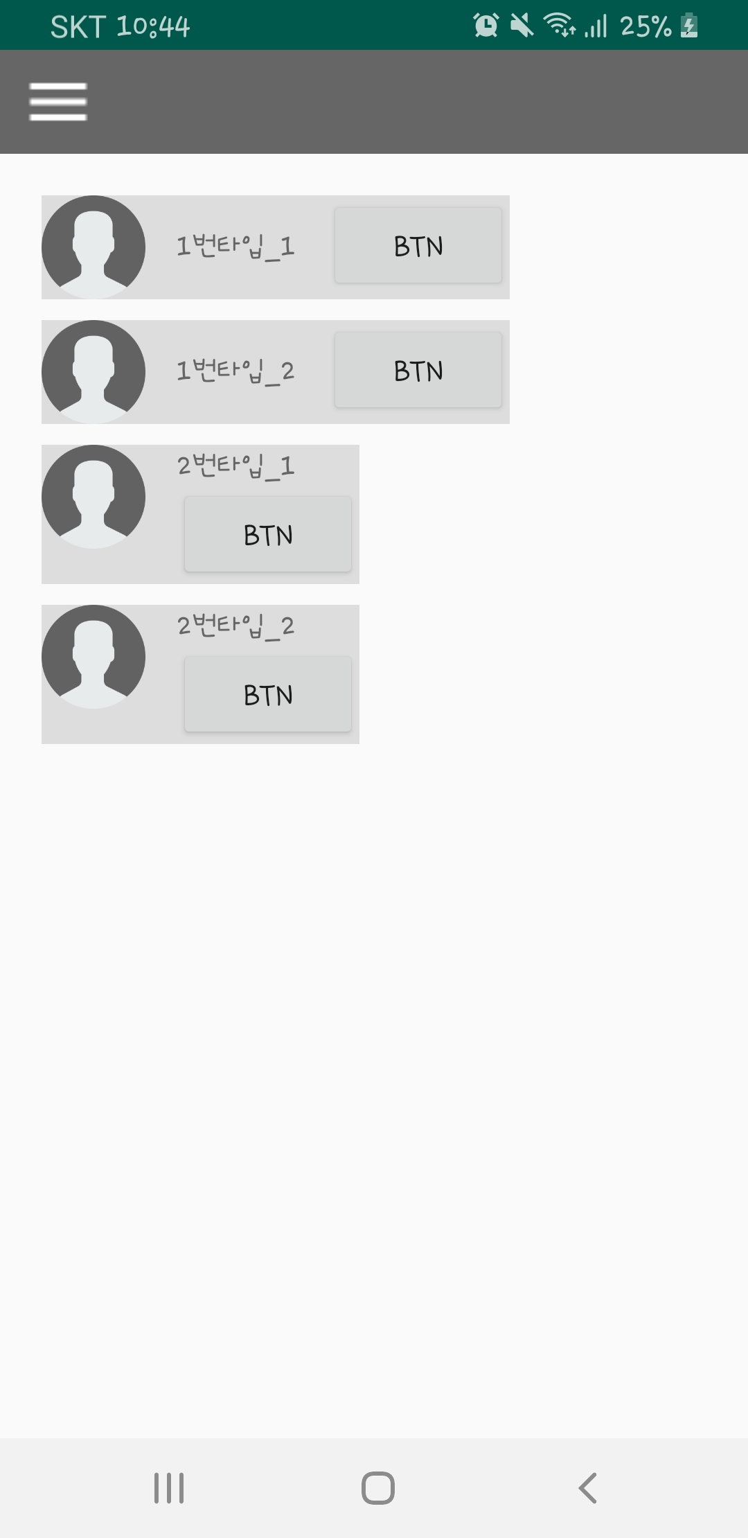 먼저 위와 같이 간단한 두 가지 타입의 뷰를 RecyclerView에 배치하여 보겠습니다.